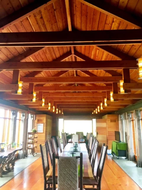 Getting restorative massage. Notice more of the tree trunks inside. It's a theme here in most of the interiors. Very unusual.