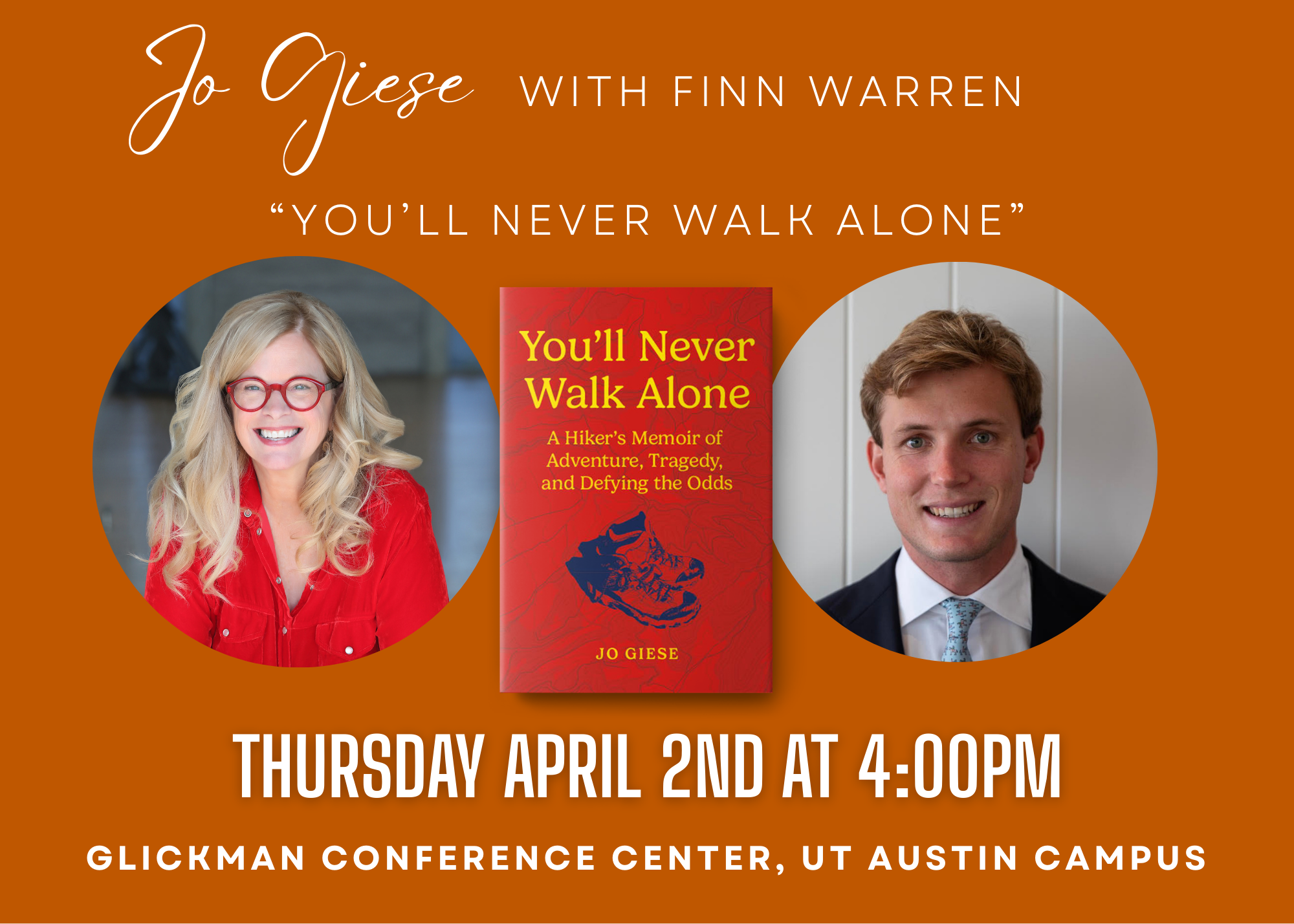 Join author Jo Giese for an inspiring and thought-provoking conversation at the Glickman Conference Center on the campus of University of Texas at Austin.